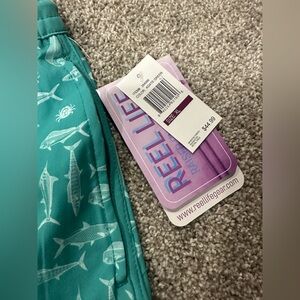 Reel Life Board Shorts Men's Size XL Green All Over Print Fish Swimwear Beach