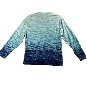 fishing shirt long sleeve shirt ocean wave print Reel Life apparel teal shirt mens outdoor wear medium size shirt mens casual shirt adventure wear lightweight fishing shirt breathable polyester shirt fishing gear clothing water inspired design