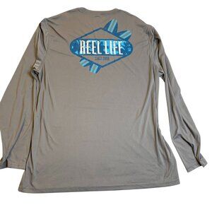 Reel Life Mens Shirt XXL Gray Long Sleeve Performance Polyester Fishing Graphic