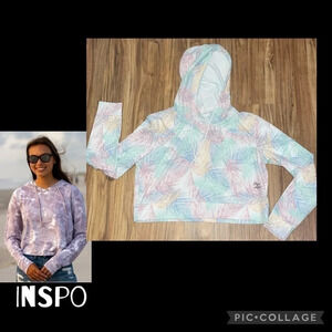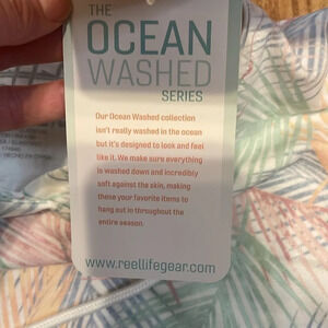 Reel Life womens hoodie Medium shirt top palm pattern muted cropped white light