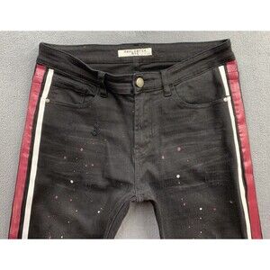 Reelistik NYC Denim Jeans Men's Size 32 Black Wash Racerstripe Paint Splash