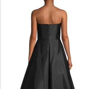 This gown takes sophistication to the next level with a sweeping skirt and floral lace-effect panels. Strapless Sleeveless Concealed back zip Wool/silk Dry clean Made in USA About 55"-70" from shoulder to hem US size 4.