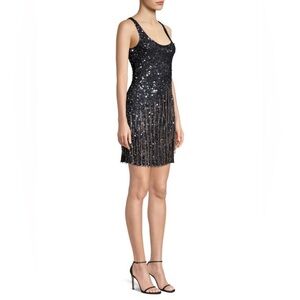 Looking to the flapper dress for inspiration, this mini flaunts allover sequins and asymmetric beaded fringe.