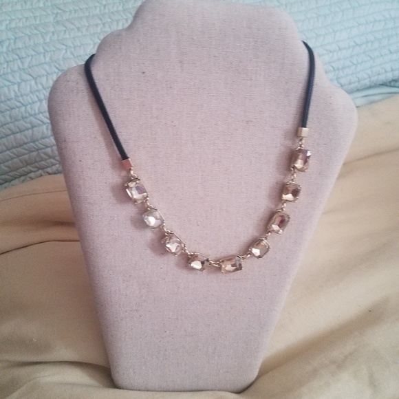 Gold rhinestones on black leather strand adjustable with a gold connector, can be reversed to show the gold fittings