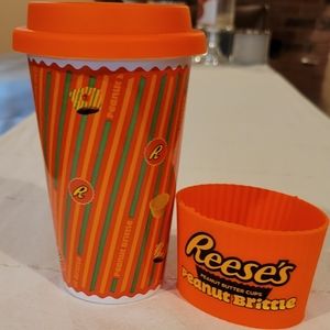 Reeses Ceramic Mug. It has a silicone lid and a silicone heat protective wrap. It's brand new.... it didn't have tags on it when I bought it. We have too many mugs as it is. So off this goes! ❤