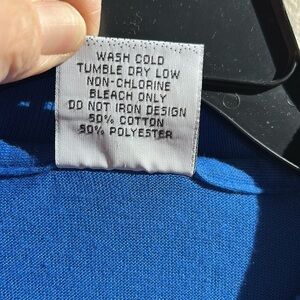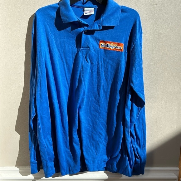 Hersheys Reese’s Nutrageous Royal Blue Long Sleeve Polo. 2 button closure. Ribbing at cuffs and collar. 50% cotton, 50% polyester-pretty lightweight. This shirt has never been worn—it was packed away in a box for 30 years. Size XL