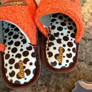 Enjoy the comfort of Reese's orange cozy youth slippers Sz M 2/3 and cute socks paired with a fun notebook. Perfect for any Reese's fan. These are so cool and will make an excellent gift!