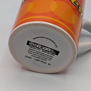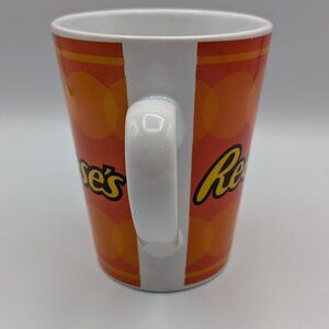 Reese's mug in bright orange and white, branded by Galerie. This 4.5-inch tall mug is in good used condition with some marks and scratches on the outside and imperfections on the handle, as shown in the images. Perfect for Reese's fans or as a unique addition to your mug collection!