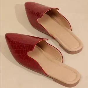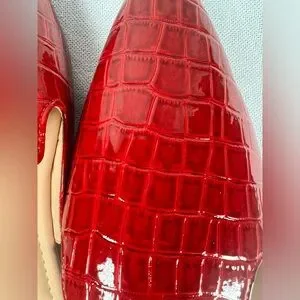 The vibrant red color is sure to turn heads, while the flat design ensures a comfortable and practical fit. Whether you're running errands or heading to a special event, these shoes are the perfect choice. Add them to your wardrobe today and step out in style!