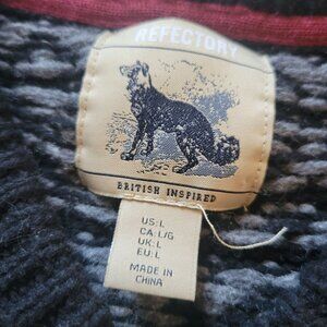 Refectory Mens V-Neck Wool Blend Pullover Sweater Gray & White Pattern Size L