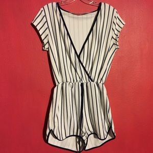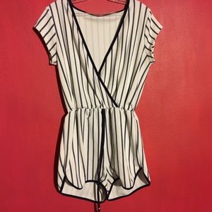 Smooth comfortable feel Romper. Strings aren’t adjustable, just for design. Perfect fit. Perfect for girls night out* navy blue and off white *