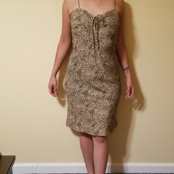 Is a gorgeous dress on leopard print clothes,great to any occasion. Please see the picture's to more details..