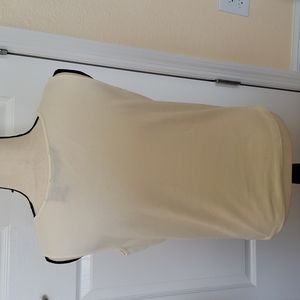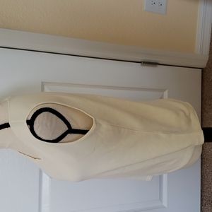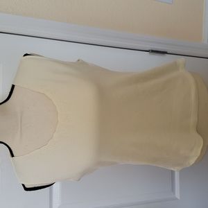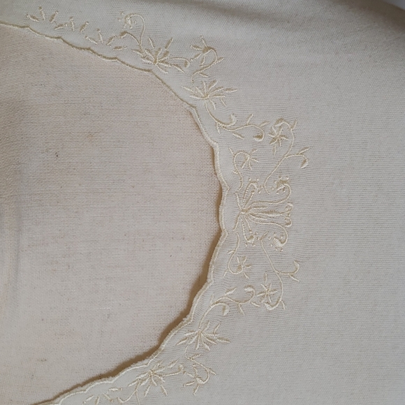 This is a cute Reference Point Petites Top. It's an off white / light cream color with a scalloped neckline in front & a pretty embroidered pattern at the neckline.