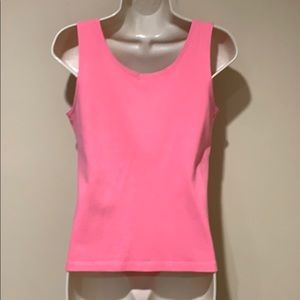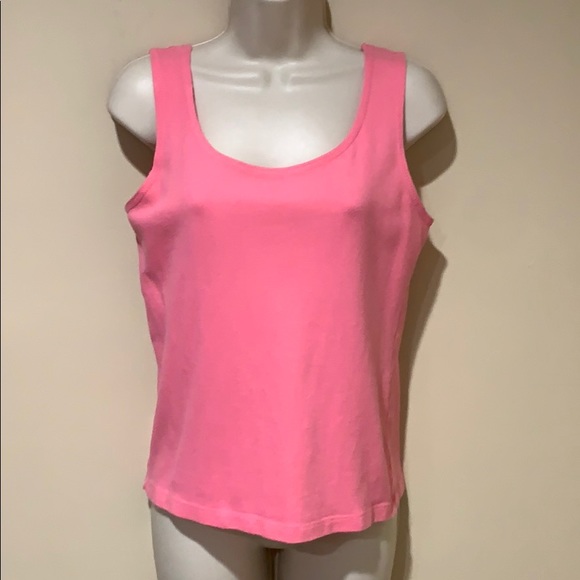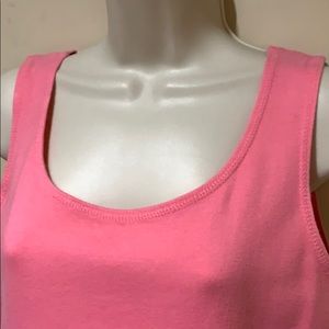 Pretty shade of pink. Soft & stretchy. Bust flat 17” stretching past 27”. Length 22”.