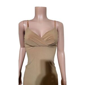 Reference v-neck nude ruched front detail Spaghetti Strap mini bodycon cocktail club wear dress M