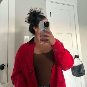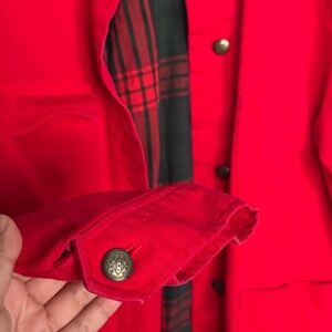 absolutely stunning red jacket. In amazing condition. This jacket is perfect for the fall and the winter. This could be your next staple piece in your outfits. The corduroy collar is to die for as well. Could be worn down or styled for major events.