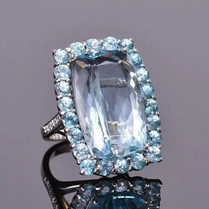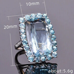 "Refine Thin Super Large Pure Light Blue Zircon Rings for Women, MARR9218