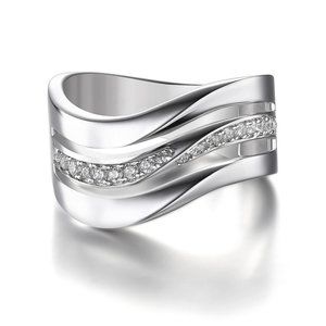 Refine Three Layers Wave Zircon Macro Pave Rings for Women, PD389