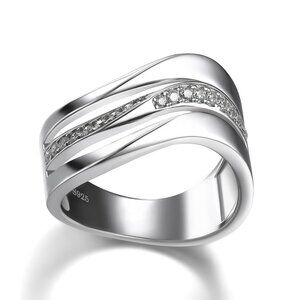 Refine Three Layers Wave Zircon Macro Pave Rings for Women, PD389
