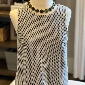 J.Crew: Refined Rib Shell Tank For Women - Navy and white. Size medium and slightly shorter in length to expose belt/waist of pants. Looks great under blazers and a good jean jacket.