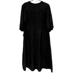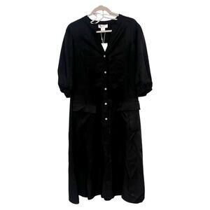 Refinity Black Puff Sleeve Midi Shirt Dress XS Button Front Pockets NWT