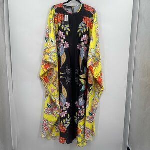 Refka Multicolor Floral Sari Siyah Standart Kaftan Maxi Dress One Size NWT