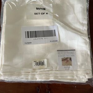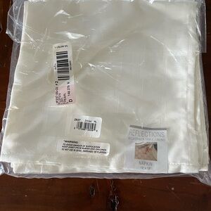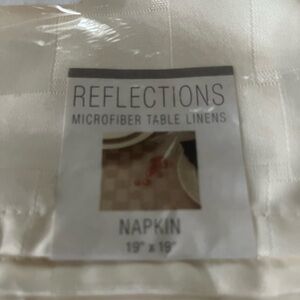 Enhance your dining experience with the Reflections Ivory Table Linens Set. This elegant set features a beautiful ivory color, and a subtle checked pattern.