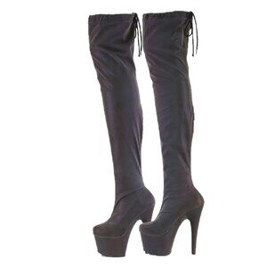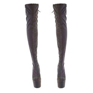 Reflective Stretch Thigh High Platform 7 Inch High Heel Boots 3008
