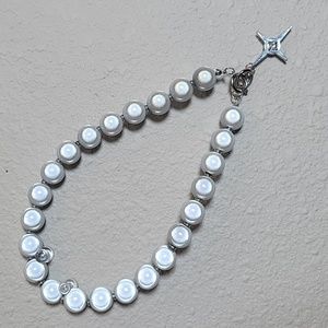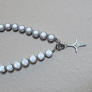 reflective silver necklace with star diamond charm. chocker style. very trendy used once