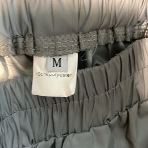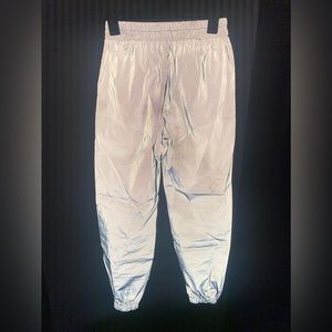 Reflective jogger pants, needs steamed or ironed to keep wrinkles out. Not rips or stains washed in pictures and before shipped