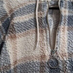 Reflex Plaid Hooded Sherpa Cropped Pullover Sweater, Women's Large