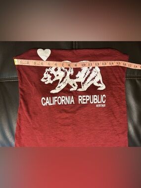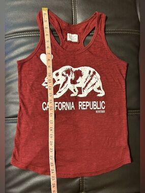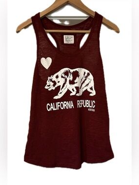 Reflex Razer Back Tank. Size L. Deep Red. Graphic, California Republic. Bear mascot. Loose fit. Cotton blend. Great condition. See pictures for details