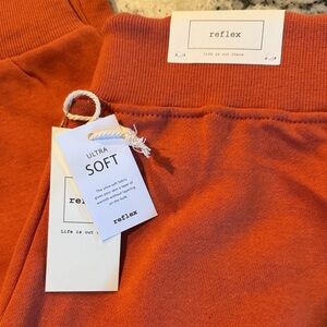 Bright orange joggers. Soft fabric. Perfect for everyday comfort.