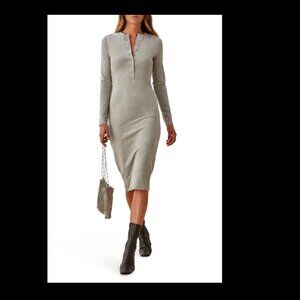 A heather-grey dress is sure to be worn on repeat thanks to a stretchy, soft organic-cotton fabric and a goes-with-everything hue. Style Name: Reformation Stein Organic Stretch Cotton Long Sleeve Henley Dress. Style Number: 6216877.