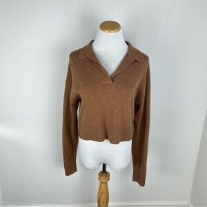 Reformation 100% Cashmere Cropped Polo Sweater Brown Size XS B24