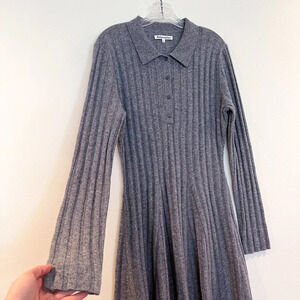 Reformation 100% Cashmere Gray Recycled Preppy Long Sleeve Knit Mini Dress Large