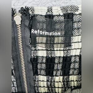 Reformation 100% Linen Ruffle Trim Hattie Dress Checkered Smocked Dress Sz 2
