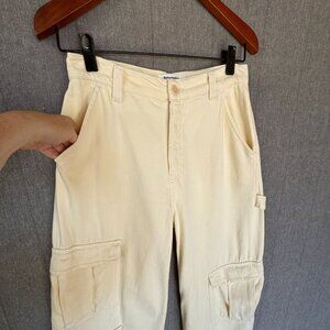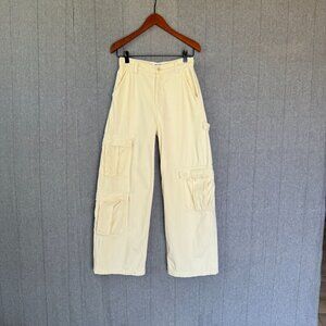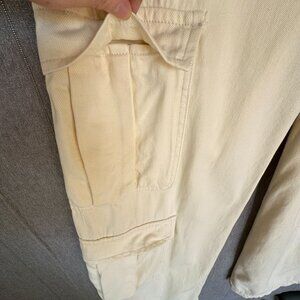 Reformation 100% Organic Cotton Button Cream Landy Wide Leg Cargo Jeans Size 26