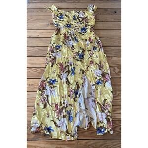 Reformation 100% Silk Floral Midi Dress Size 8 Women’s Yellow