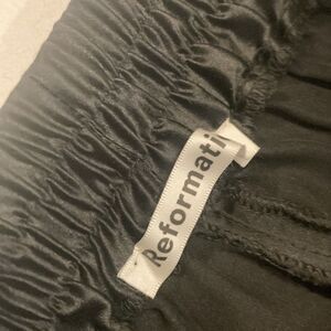 Reformation 100% Silk Wide Leg Black Smocked Waist Pull On Flowy Pant