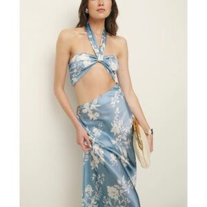 Reformation 100% silk Blue Floral Dress NEW
