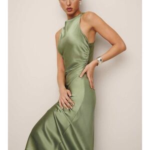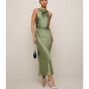 Reformation 100% silk cassette Dress in artichoke NEW