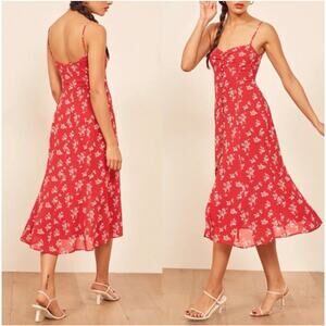 Reformation Cybill Sundress Red Floral Button Up Midi Dress