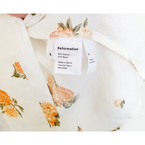 Reformation 6 Frankfort Button Front Floral Dress Tie Front Silky Yellow White