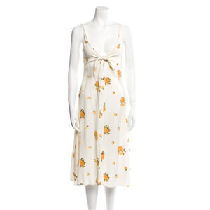 Reformation 6 Frankfort Button Front Floral Dress Tie Front Silky Yellow White