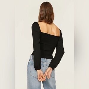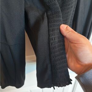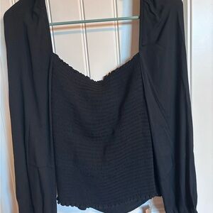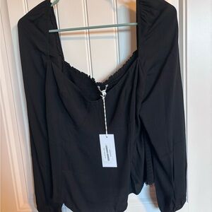 This elegant black top is perfect for any occasion. Its sleek design offers a sophisticated look. Pair it with your favorite accessories for a complete outfit. Size Xlarge