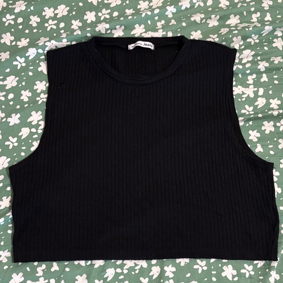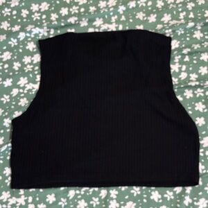 Chic black crop top by Reformation. Ribbed texture adds style. Ideal for layering or solo wear. Excellent used condition no flaws. Xlarge