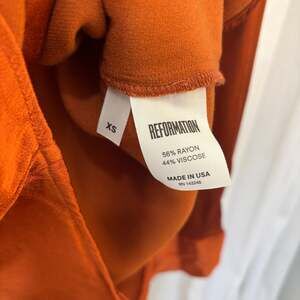 Reformation, a leading sustainable fashion brand, offers eco-friendly women's clothing known for its stylish designs and commitment to environmental responsibility. Each piece is crafted with sustainability in mind, using materials like Tencel, organic cotton, and recycled fabrics. This item reflects the brand's dedication to quality and conscious fashion. New condition.