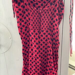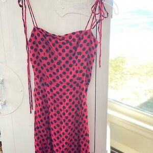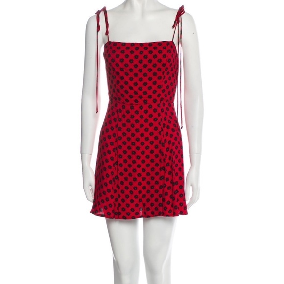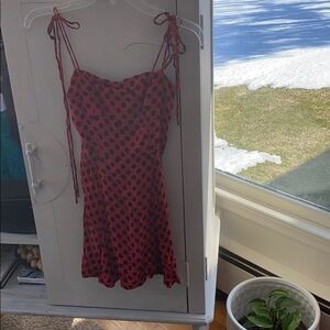 Reformation Sleeveless spaghetti straps ties into a bow red and black Mini dress size 2 does have a snag on strap see pics