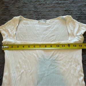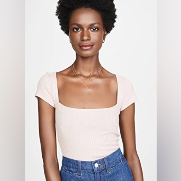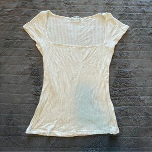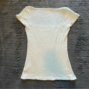 Reformation Bardot ribbed normcore bohemian contemporary square neck off-white short sleeve top size small GUC.